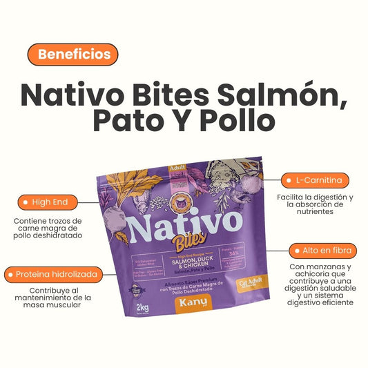 Alimento seco Nativo Bites Salmón, Pato y Pollo Kanu Pet para Gato Adulto