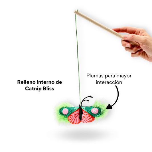 Juguete de Peluche Mariposa Verde Azul con vara para gato Kanu Pet