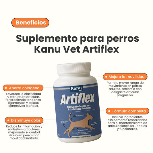 Suplemento Masticable Artiflex Kanu Vet para Perros - Refuerza Articulaciones y Mejora la Movilidad