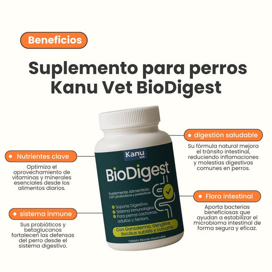 Suplemento Digestivo BioDigest con Probióticos Kanu Pet para Perros de Todas las Edades