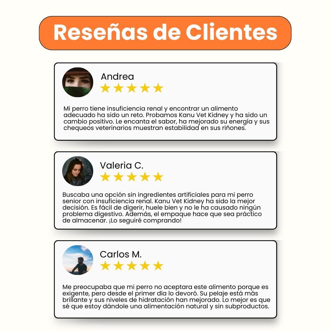 Alimento Medicado Húmedo Kanu Vet Renal - Kidney para Perros Adultos es un alimento formulado por especialistas para apoyar la salud renal de tu perro. Su fórmula cocida al vapor conserva los nutrientes esenciales, favoreciendo una digestión óptima. Elaborado con ingredientes naturales, este alimento está libre de subproductos, saborizantes artificiales, sal y azúcar, garantizando una nutrición de alta calidad y saludable para tu perro.