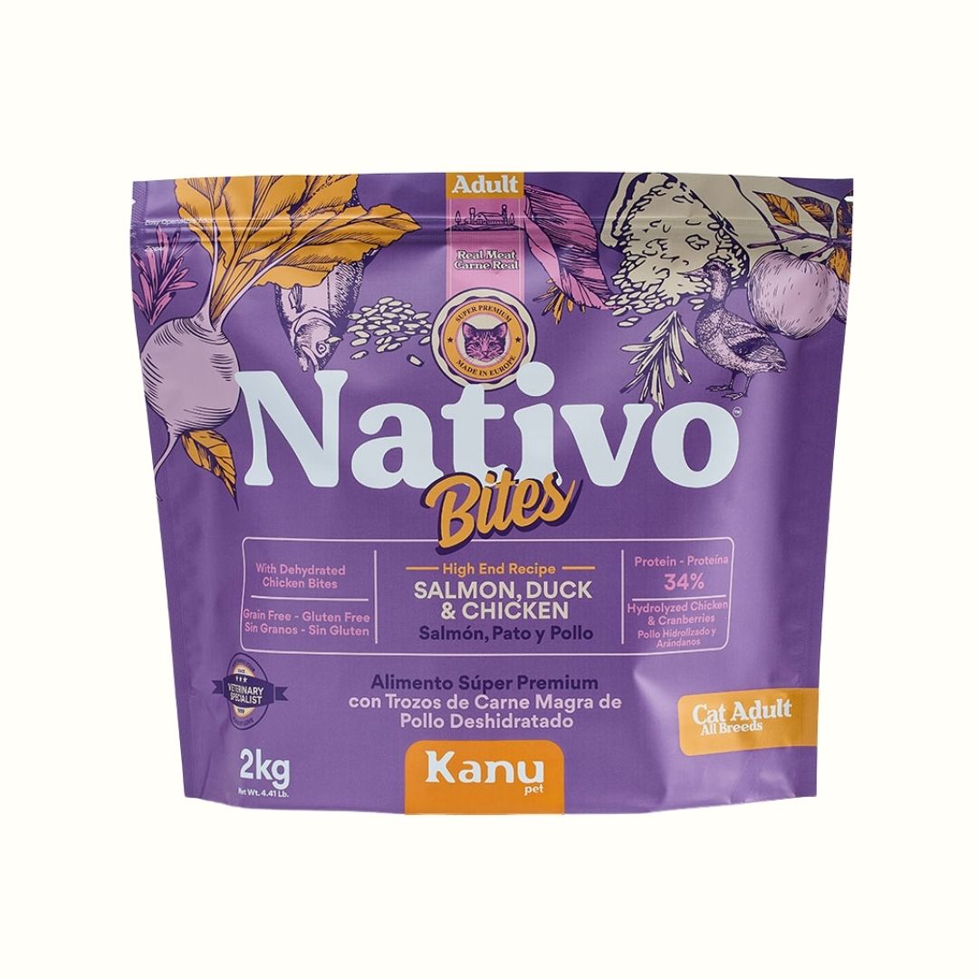 Alimento seco Nativo Bites Salmón, Pato y Pollo Kanu Pet para Gato Adulto