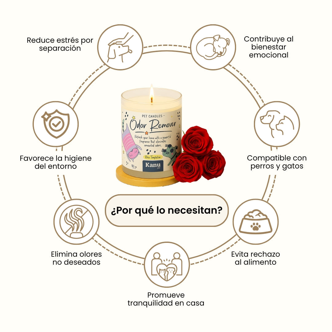 Vela eliminadora de olores Kanu Pet para perros y gatos aroma Rose Temptation
